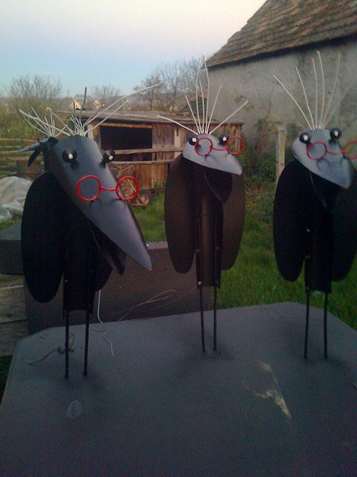 A tárgyak 1mm-es lemezből hideg alakítással készülnek, hegesztési eljárással és festéssel. Festés nélkül, hőkezeléssel és lakkozással védem a korroziós folyamatoktól. A tárgyak szobadíszként és kerti díszként is funkcionálnak, egyes esetekben pedig madár riasztóként használható, pl. a varju. Ha a képen látható tárgyakból szeretnél, vagy van ötleted amit szeretnél magvalósíta látni, keress bizalommal, rövid határidőn belül elkészítem!